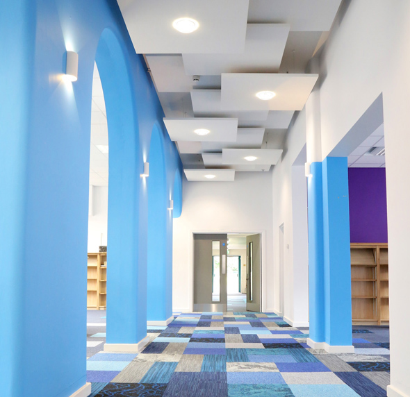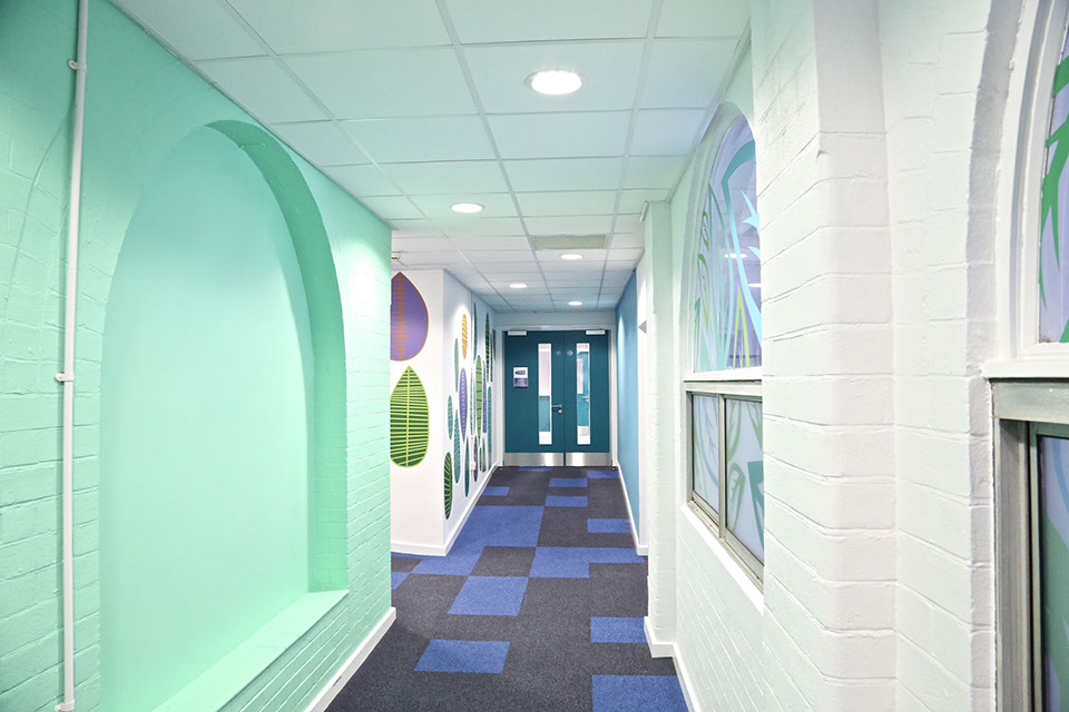 Hinckley Parks Primary is a 3FE primary school in Hinckley, Leicestershire. The scheme renovated the existing Mount Grace school building both internally and externally in a major refurbishment project. In total 21 classrooms were created along with other learning spaces. Our involvement included developing the interior scheme, running engagement workshops with the school and developing super graphic artworks.