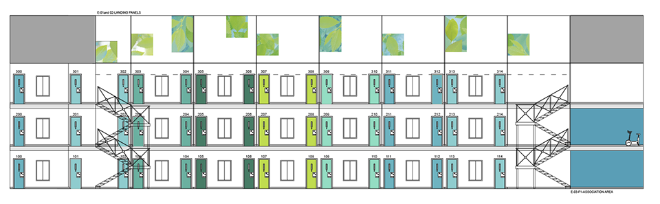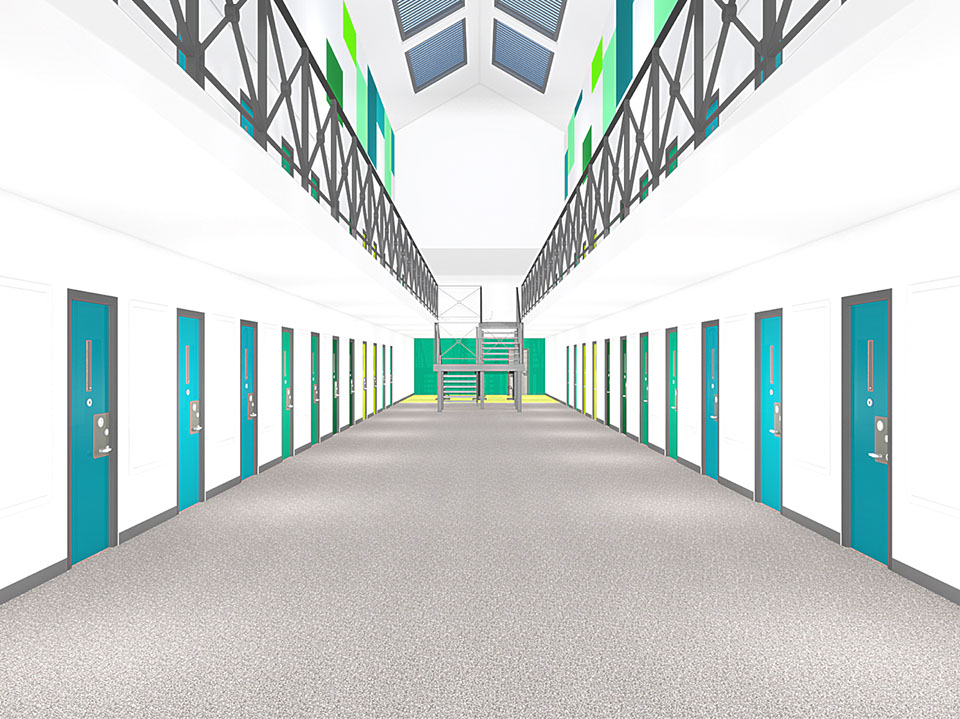 We've been working with HM Prison service to design a scheme for one of their establishments which aims to improve the custodial environment using super graphics and internal finishes as part of an overall approach which explores biophilic principles. The project is part of their 'Living Environment' programme which aims to reduce stress and improve mental well being amongst inmates with a consequent reduction in instances of violence and self harm.