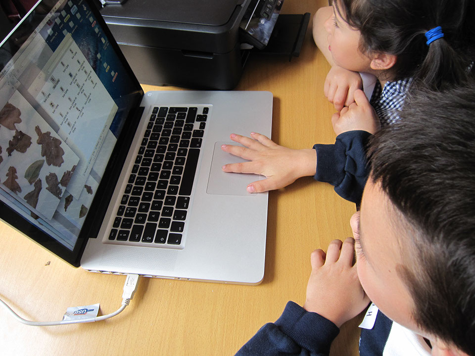 Then using leaves that we had collected outside ( they were quite wet!) we made rubbings of the leaves and commented on the vein patterns they created. The Y2 group thought this was quite magical. We also then explored the classroom and made rubbings of other surfaces to compare.