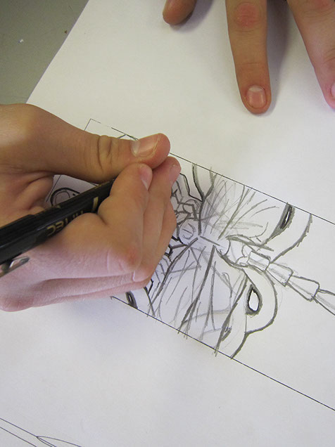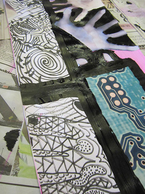 Workshops were arranged with a Y5 group in the morning and a Y2 group in the afternoon. We looked at examples of the resin and acrylic panels and talked about surface and pattern.
