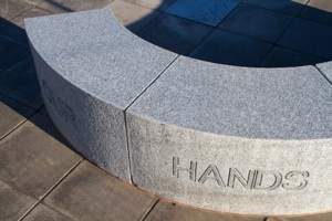 After a series of pupil workshops exploring ideas the scheme was resolved as a set of carved granite stone seats with stainless steel plaques with acid etched hands of the pupils depicting their dreams and aspirations for the future. The carved stone blocks contain the phrase " Our Future Our Hands' at the PRU which is reversed for the Alexandra site.