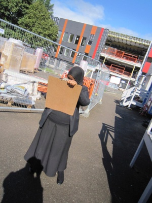 We then moved on to producing smaller A3 line paintings working individually and then progressed that into more refined drawings using chalks. The process is designed to get kids into using materials, exploring the medium and then beginning to apply a reasoning process to decision making. Using viewfinders we isolated sections of the work produced and took digital photos as a record.